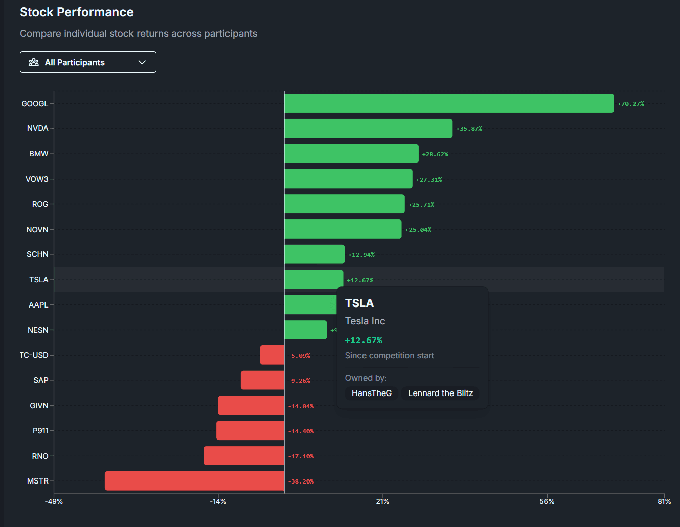 - Compare everyone's stock picks head-to-head. Instantly see which stocks are crushing it and which are tanking.